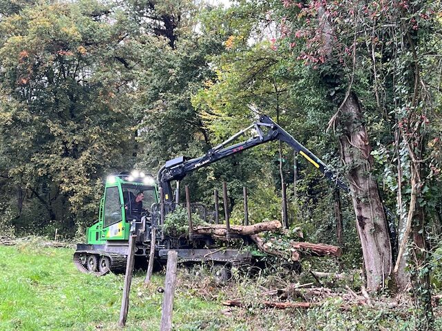 La Fondation Officielle de la Jeunesse (FOJ) est venue faire du débardage avec des chevaux afin de dégager les troncs gênants sur le cours d’eau et le chemin.