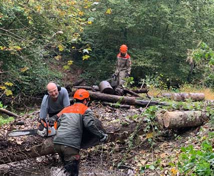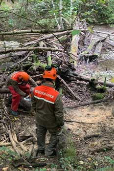 Un effort particulier a été concentré sur le débardage du lit de la rivière, les nombreuses chutes d’arbres rendaient le cours de l’eau très difficile à ces endroits.
